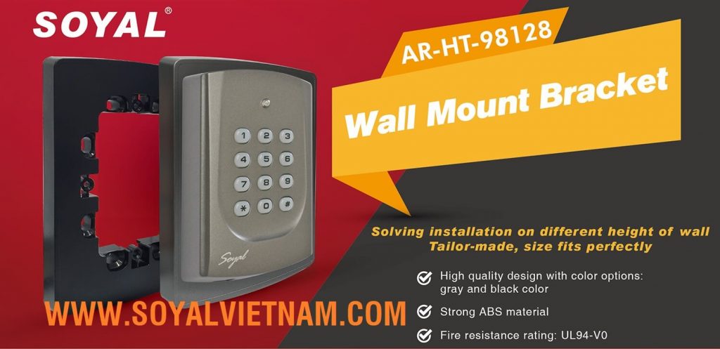 Bạn đang gặp khó khi phải lắp đặt đầu đọc Soyal cho công trình khi mà tường bị khoét lỗ to mà với kích thước của đầu đọc thẻ không thể phủ lấp được hoặc bề mặt tường gồ ghề? Nó sẽ làm mất tính thẩm mỹ cho hệ thống, vậy giải pháp của bạn như nào? Soyal sẽ giúp bạn giải quyết vấn đề này một cách nhanh chóng. Giờ đây Soyal đã cho ra mắt đế gắn tường đa năng AR-HT-98128 với thiết kế hoàn toàn mới, chất lượng cao với 2 màu xám và đen. Với đế treo tường Soyal phù hợp với mọi bề mặt tường, phù hợp với đa số đầu đọc thẻ Soyal.