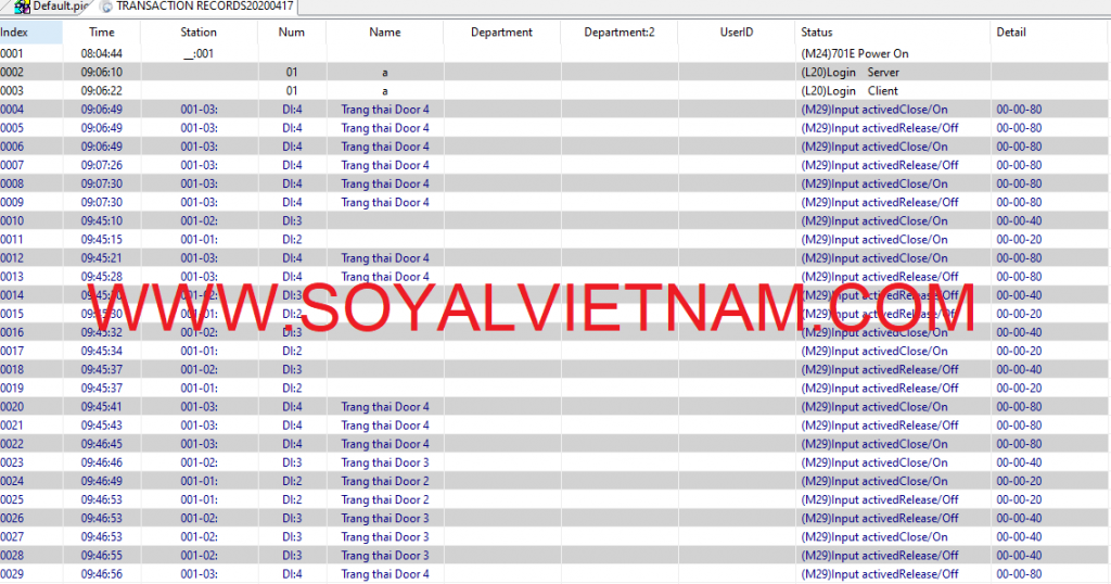 Trạng thái cửa sẽ hiển thị trên trên phần mềm 701 Soyal